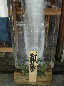 ということで、周辺では人々に涼しくなってもらうために、店先にこんな氷を置くのだそうで。